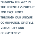 Through our unique combination of style, versatility and consistency,